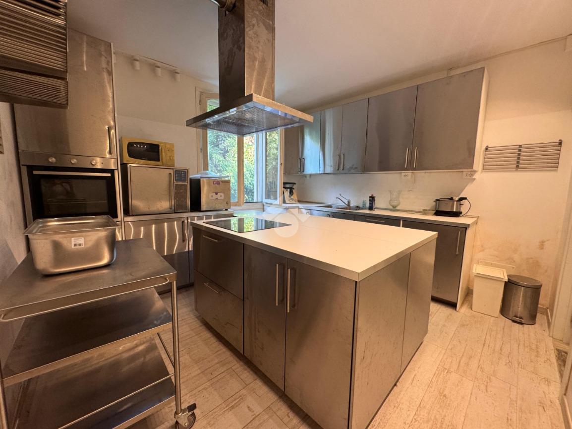 Al piano terra, l’ingresso si apre su una luminosa zona giorno composta da salotto e sala da pranzo, impreziosita da uno splendido camino, un bagno di cortesia e da una cucina professionale, ideale per chi desidera gestire un’attività ricettiva.