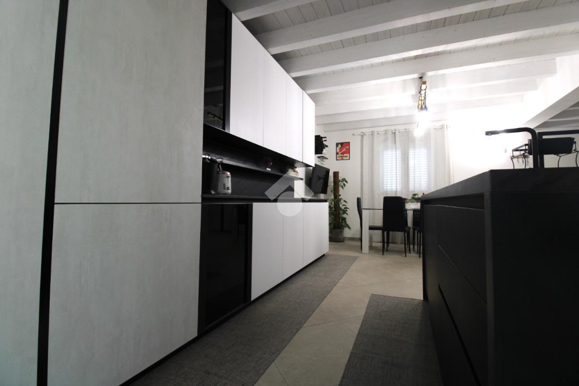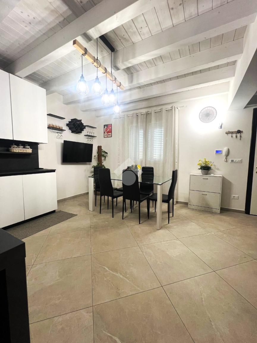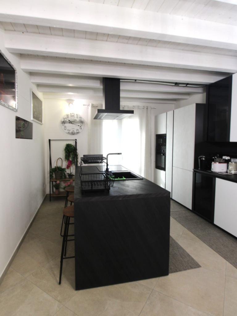 L’ingresso si apre su un luminoso soggiorno, perfetto per accogliere famiglia e amici. La cucina è abitabile e separata, valorizzata da una bellissima penisola con moderno piano cottura a induzione, pensata per chi ama cucinare e vivere la convivialità. Completano il piano un bagno finestrato e un pratico sottoscala ad uso ripostiglio.